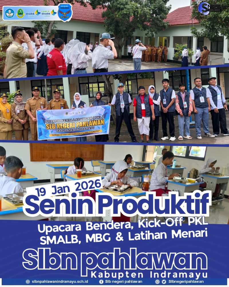 INDRAMAYU – Suasana penuh semangat menyelimuti SLB Negeri Pahlawan Kabupaten Indramayu pada Senin, 19 Januari 2026. Mengusung tema "Senin Produktif", sekolah mengawali pekan dengan serangkaian kegiatan bermakna, mulai dari penguatan disiplin hingga persiapan terjun ke dunia kerja bagi siswa SMALB.